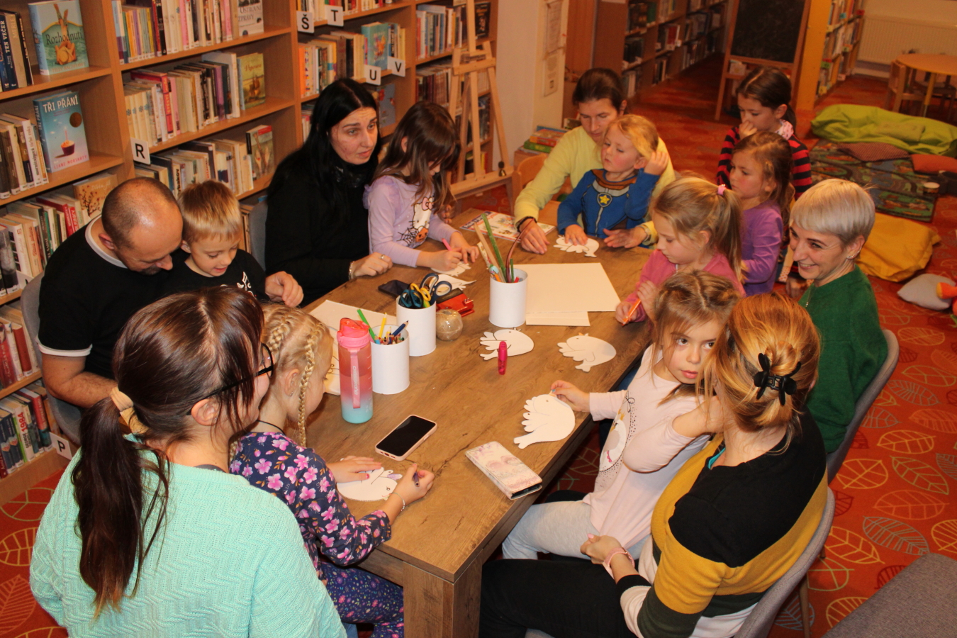 Na programu bylo seznámení s knihovnou a projektem Bookstart - S knížkou do života a zvládli jsme i básničky s pohybem, na téma denní rytmus dětí. K dispozici byly i knížky na prohlížení, hračky, zajíc s balónky nebo malování pastelkami.