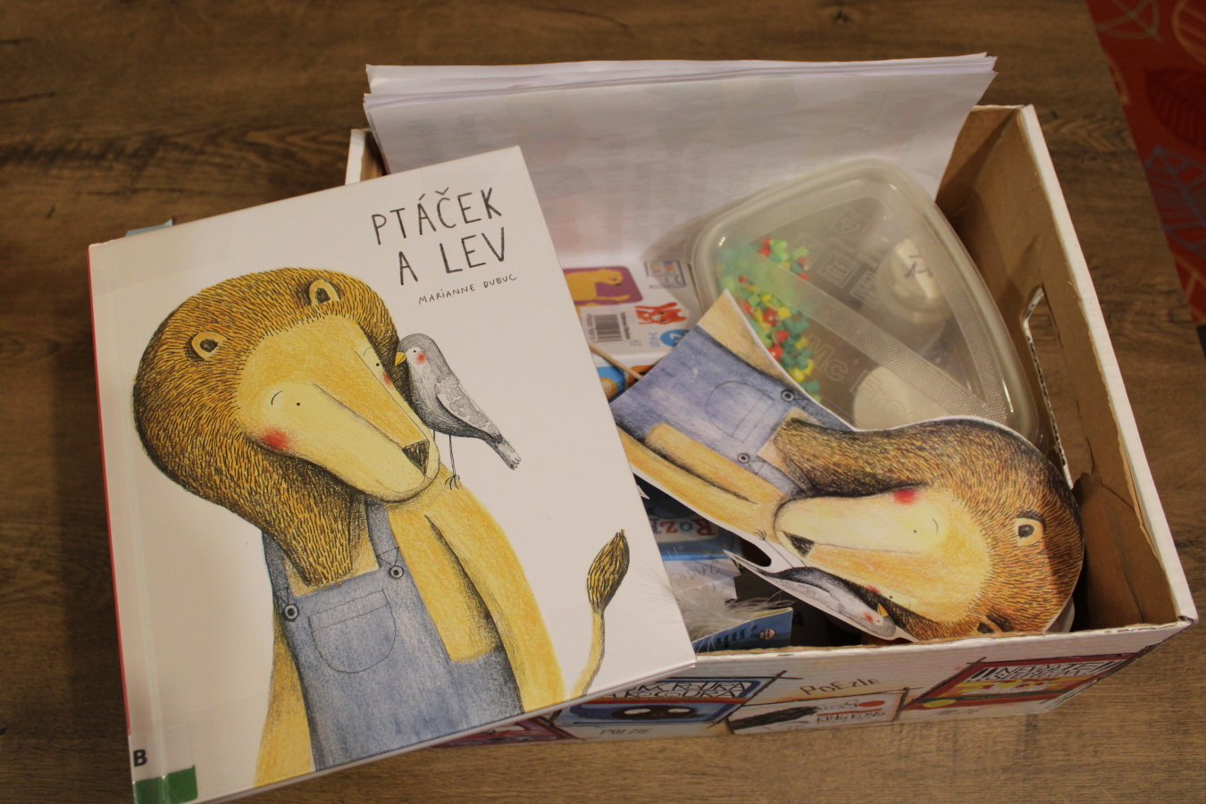 Středeční odpolední program s názvem Ptáček a lev aneb pííp a uááá patřil rodičům a dětem, neboli Knížkohrátkám, projektu Bookstart - S knížkou do života a byl zaměřen na logopedii, procvičení jemné a hrubé motoriky.