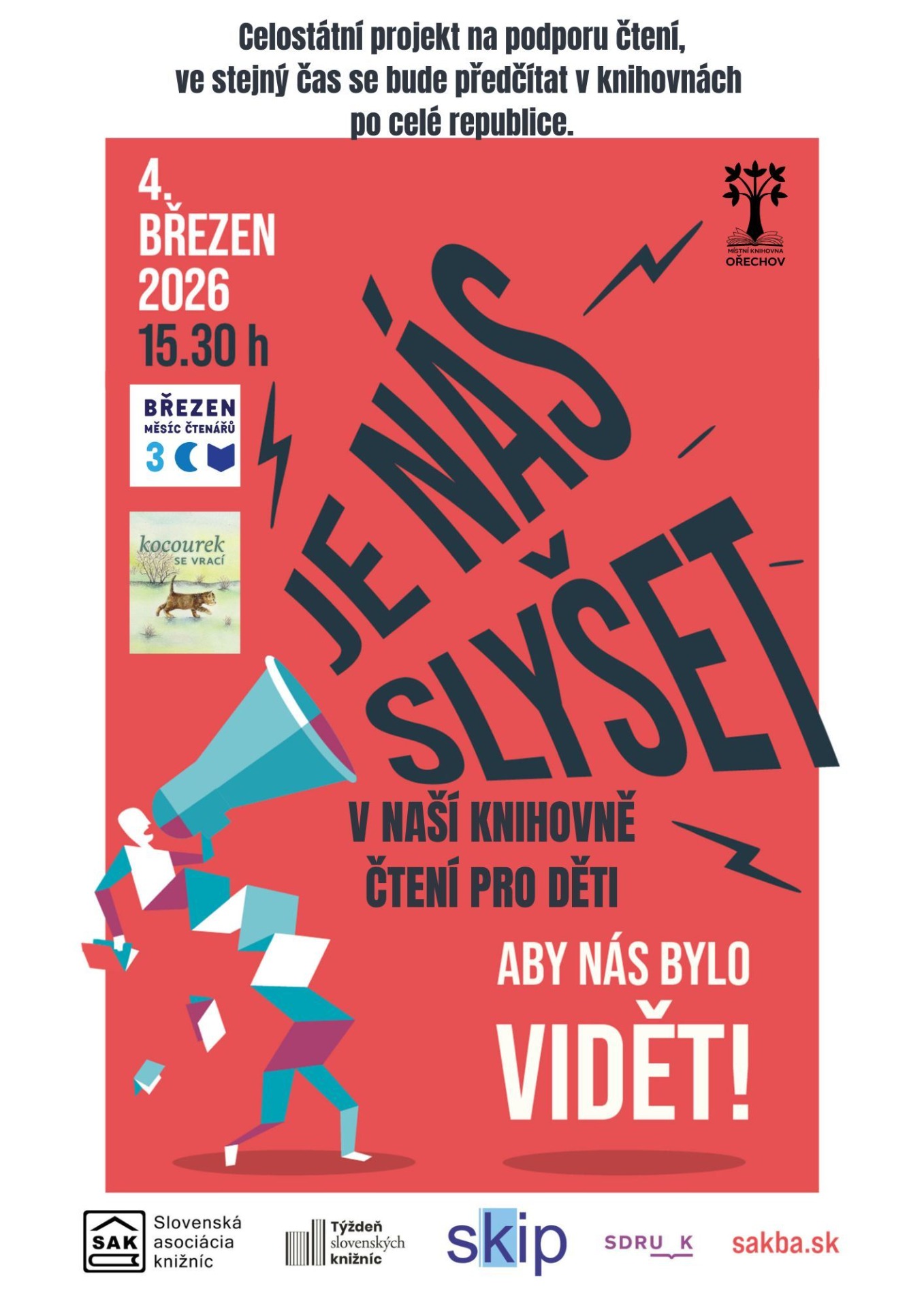 Tradiční celorepubliková kampaň Březen – měsíc čtenářů se letos zaměří na podporu čtenářství u mladých lidí. Do akce pořádané Svazem knihovníků a informačních pracovníků ČR se i tentokrát zapojí stovky veřejných knihoven napříč Českou republikou. Novinkou je podpora slovenské iniciativy Je nás slyšet!.