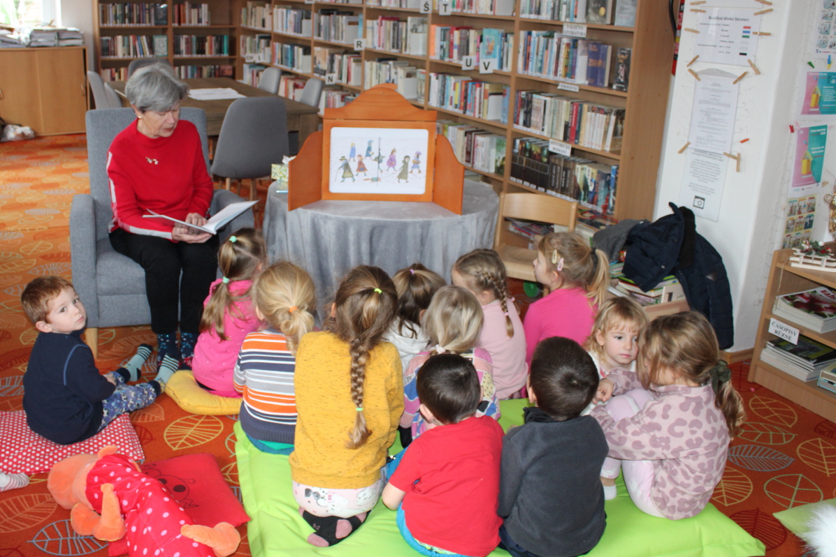 Poslední akce tohoto roku - Babičky čtou dětem byla ve středu 17. 12. 2025, kdy si do knihovny přišly poslechnout pohádku děti ze školky z úst babičky Marie Mrkusové.