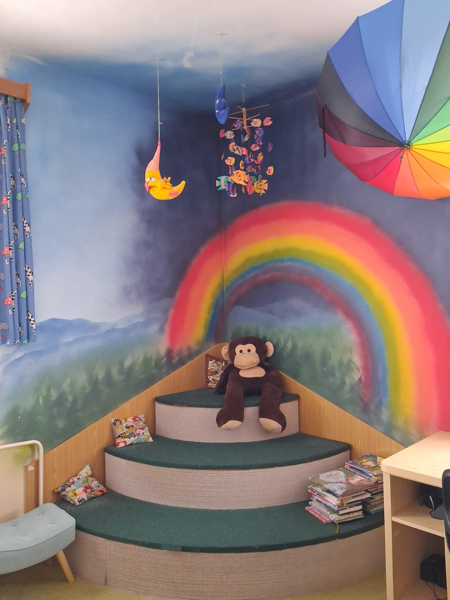 Rodiče pak mohli využít další doprovodný program, jako třeba kreslení, prohlížení Véélikého zvířátkového pexesa, krmení zajíce barevnými balónky, prohlížení knih nebo si jen tak hrát s hračkami.