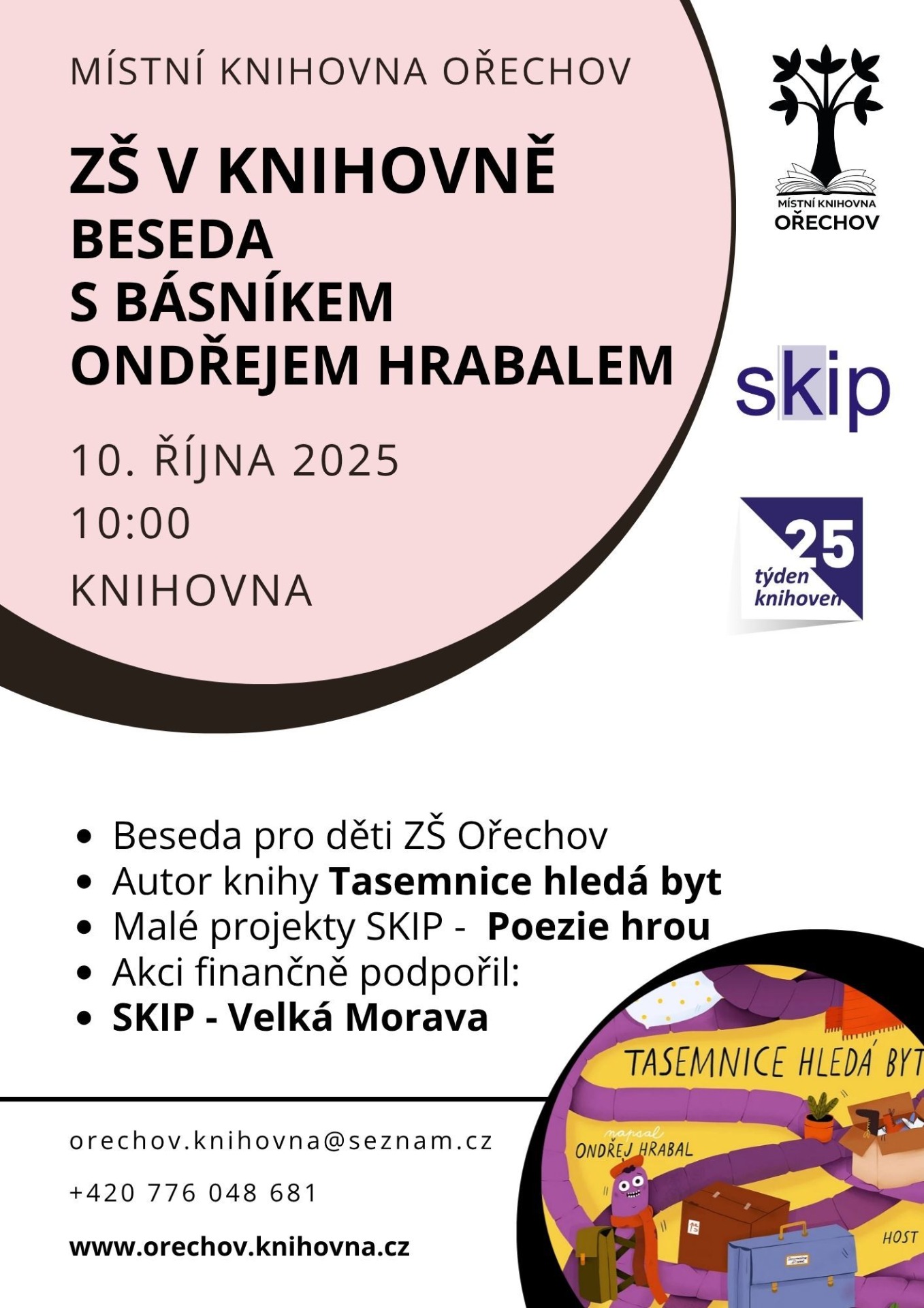 Týden knihoven 2025 jsme v naší knihovně zakončili besedou s autorem knihy Tasemnice hledá byt, Ondřejem Hrabalem, který k nám zavítal až z Brna se svou přítelkyní.
