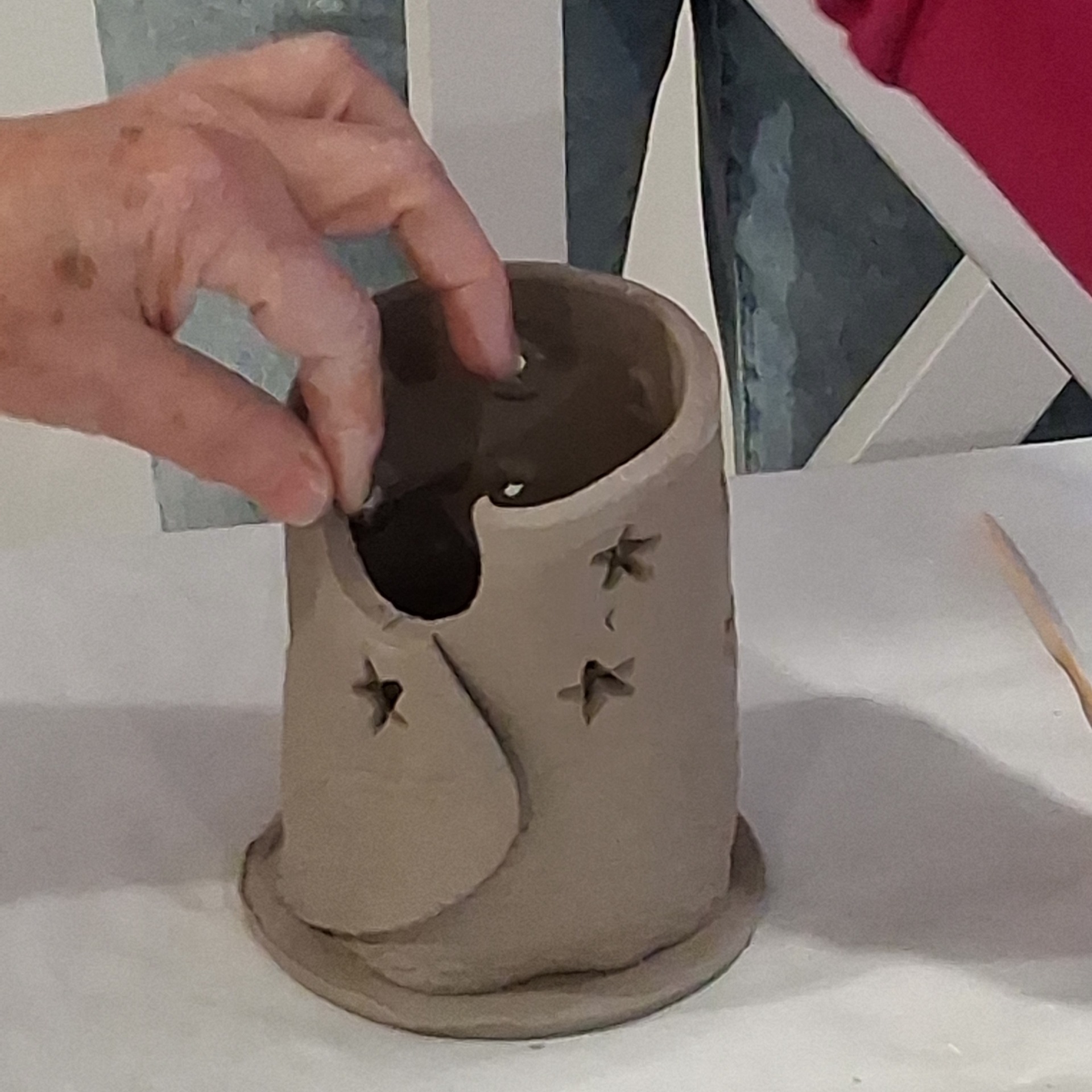 Středeční keramická dílna proběhla v komorním duchu. Využili jsme menší místnost komunitního centra a tvořili jsme svícny.